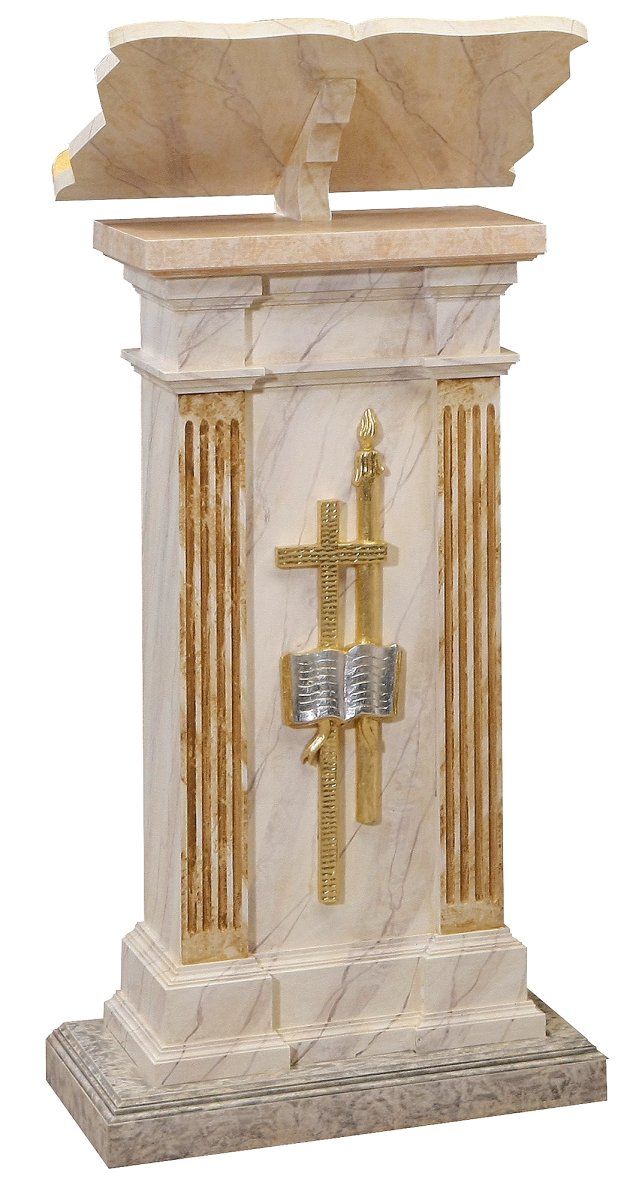 Ambone in legno massiccio con delicata decorazione uso marmo.