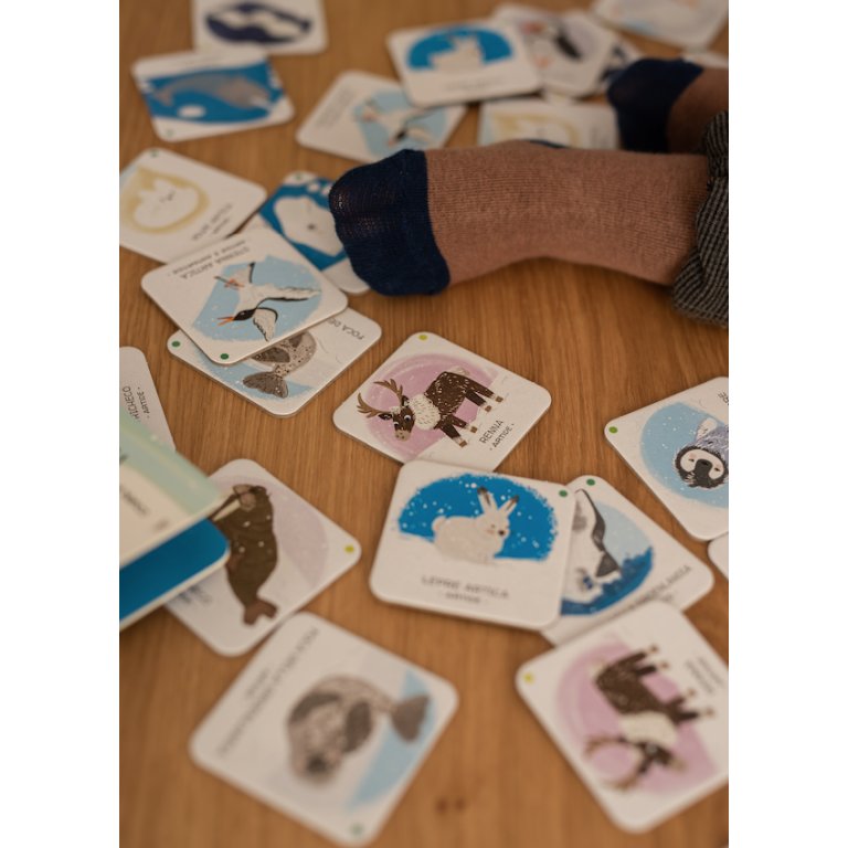 Solleva le finestrelle all’interno del libro e scopri tante curiosità sugli animali dei Poli, sull’ambiente in cui vivono e sul perché si trovano in pericolo. Poi gioca con le carte memo e allena la tua memoria!