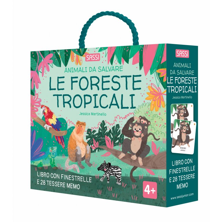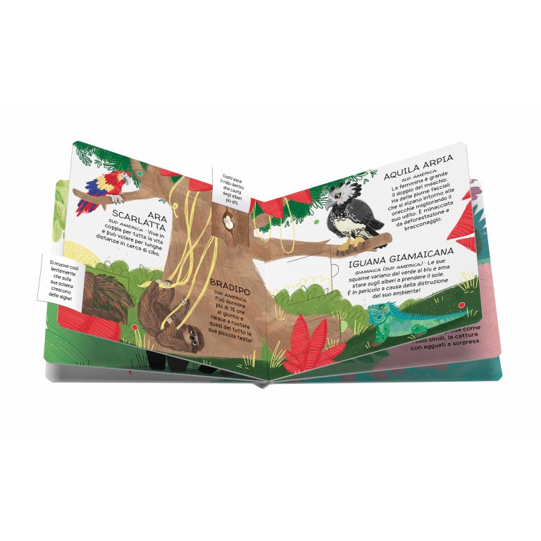 Solleva le finestrelle all’interno del libro e scopri tante curiosità sugli animali delle foreste tropicali, sull’ambiente in cui vivono e sul perché si trovano in pericolo. Poi gioca con le carte memo e allena la tua memoria!