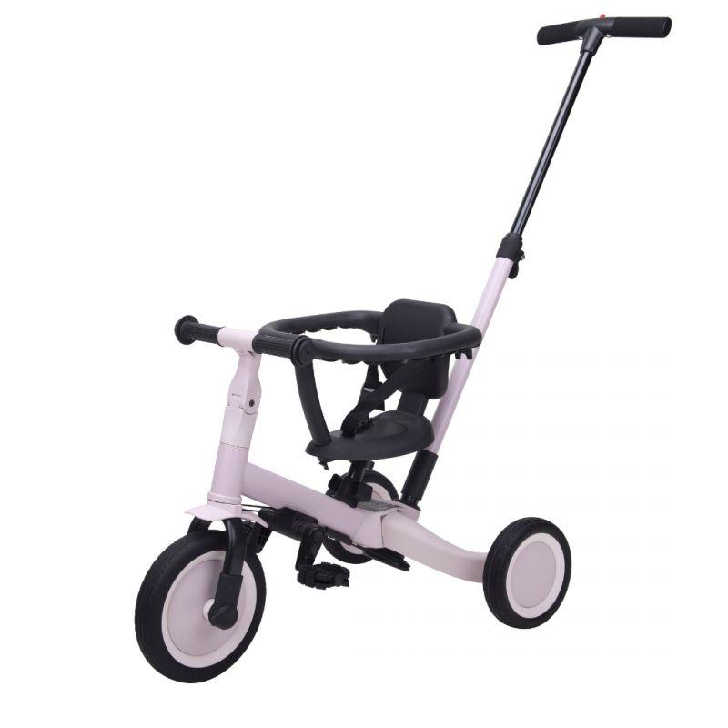 Non appena non sarà più necessario spingere in avanti il bambino, basterà rimuovere la barra di spinta e l’anello di sicurezza. Il tuo bambino potrà utilizzare un triciclo con o senza pedali. I pedali sono facili da montare o riporre sotto la sella. È quindi possibile convertire la bicicletta in una due ruote piegando le ruote posteriori verso l’interno.