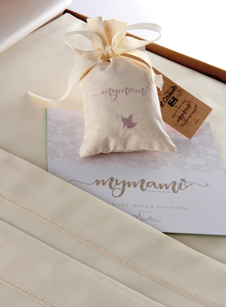 I completi copripiumino in cotone bio Mymami vengono confezionati artigianalmente in percalle di costruzione 40/40 molto compatto, dalla mano liscia e realizzato con filati di cotone pettinato. Il tessuto può presentare qualche piccola imperfezione, che è peculiare della realizzazione artigianale.