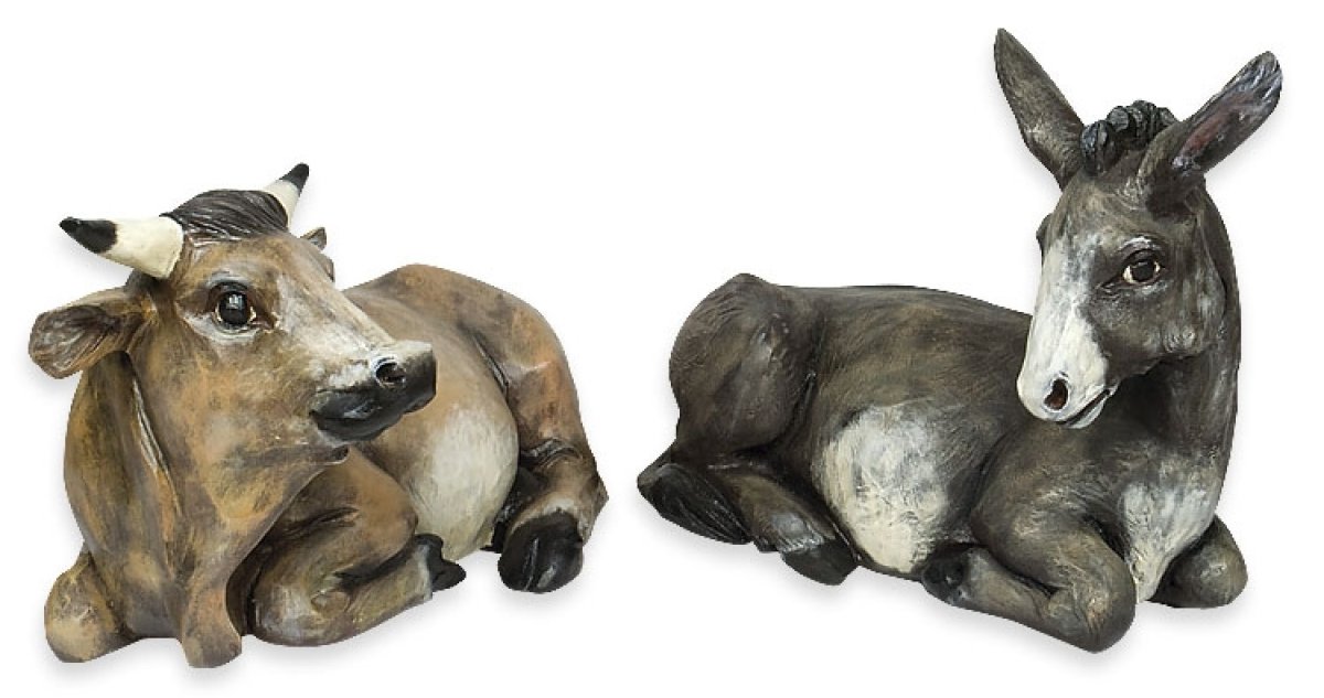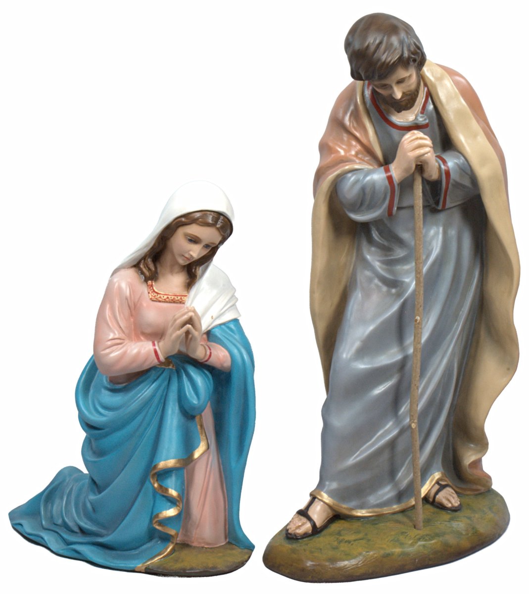Le statue di Maria e San Giuseppe in vetroresina decorata e con occhi in cristallo.