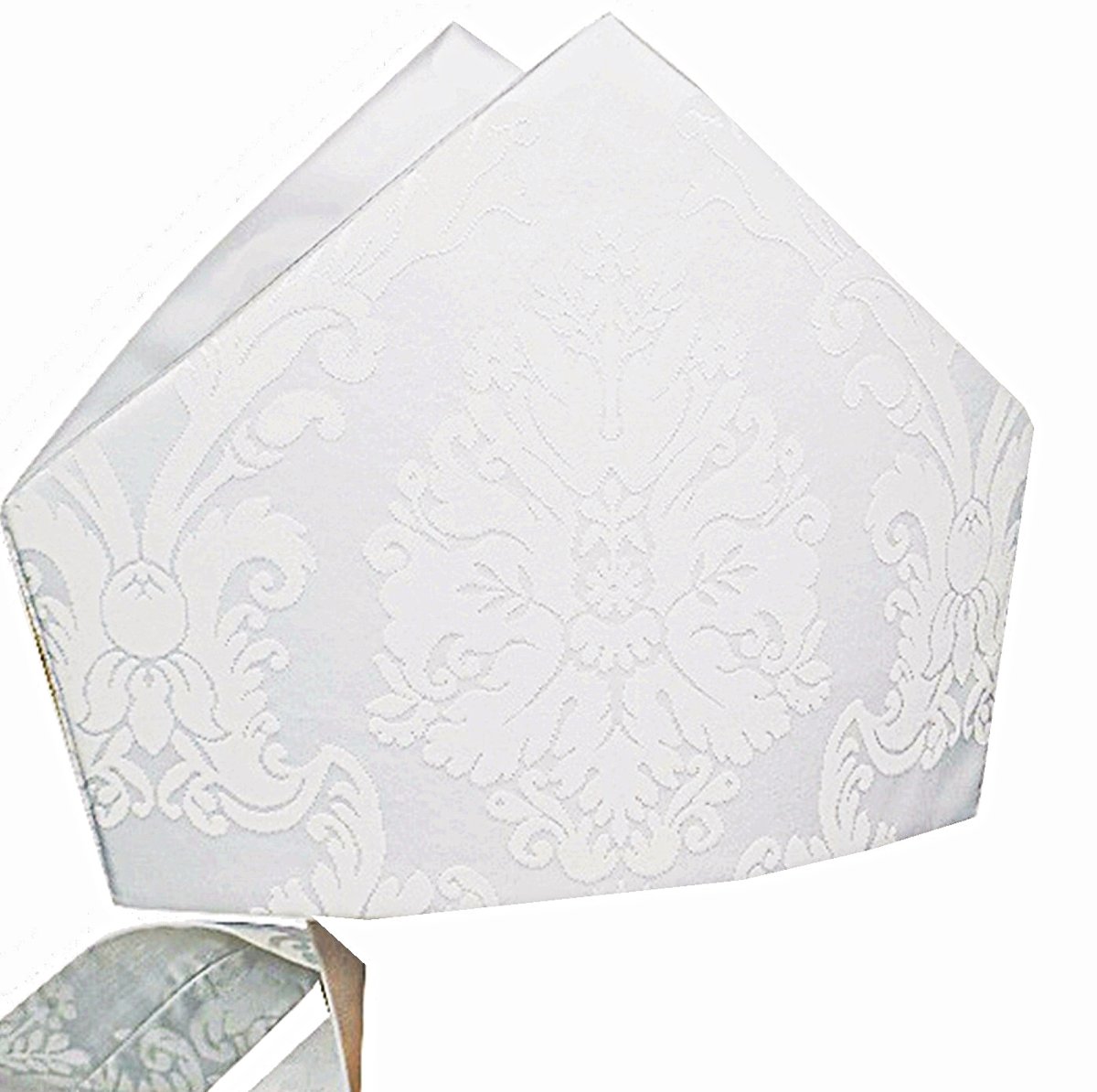 semplice mitria proposta in tessuto damasco floreale bianco.