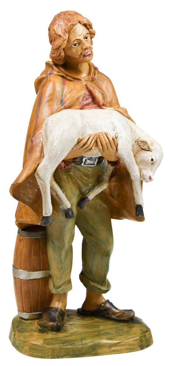 statua pastorello con vitello in lattice di gomma dura.