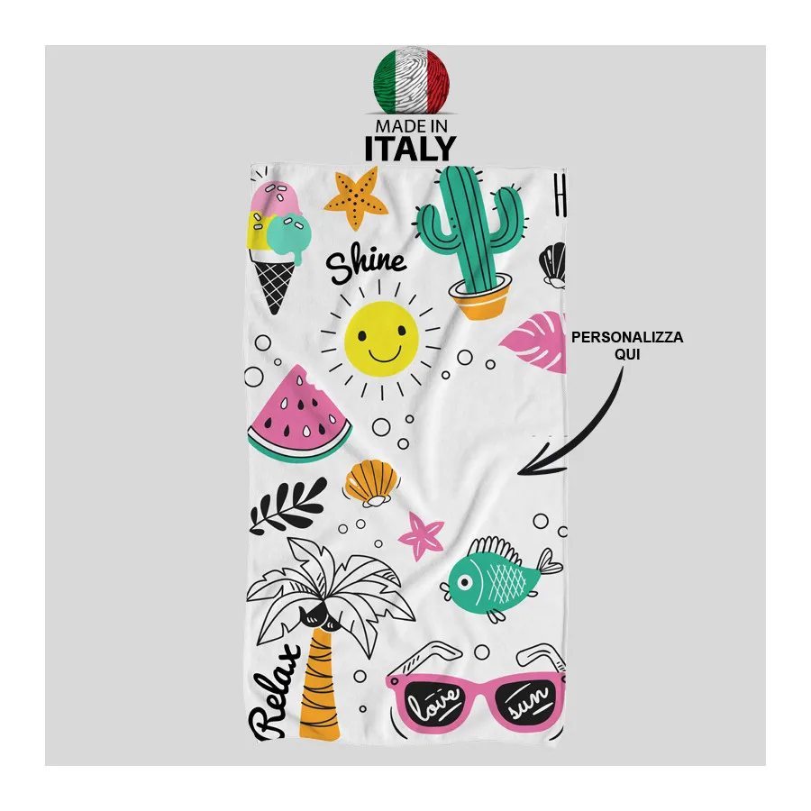 Realizza questo stupendo telo mare o telo per pic-nic realizzato in spugna e personalizzalo con le tue immagini preferite.